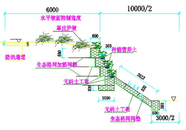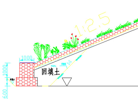 流域治理區(qū)內(nèi)的溪流或者小河等岸坡加固可采用簡單的格賓擋墻或雷諾護(hù)墊護(hù)坡形式,主要注意后期的綠化效果和景觀效果。